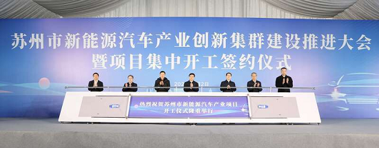 2022年1月2日,蘇州市新能源汽車產業創新集群建設推進大會暨項目集中開工簽約儀式在江蘇太倉舉行。本次集中開工簽約和投產投用產業項目共142個、總投資916億元,涵蓋新能源汽車整車、汽車電子及零部件、智能網聯汽車等細分領域,其中總投資50億元以上項目3個,30億元以上項目6個,10億元以上項目33個。