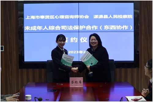 2023年2月27日,漾濞縣人民檢察院與“奉心協”簽訂未成年人綜合司法保護合作協議,深入實施《青藍工作室》合作項目,共建未成年人幫教救助平臺。雙方將以此合作為契機,借鑒學習奉賢區未成年人保護工作經驗與成果,提升漾濞未成年人檢察工作專業化水平,以“線上+線下”為通道,整合幫扶力量,強化資源共享,開通12小時公益心理咨詢熱線電話,有針對性的協作開展幫教和救助,共同打造一支屬于漾濞的心理咨詢幫教救助團隊。(上海奉賢區援漾干部供圖)