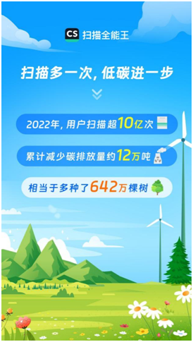 植樹節將至,合合信息旗下的掃描全能王,圍繞“低碳”主題,統計并發布了一組用戶掃描數據,2022年,用戶掃描次數超10億次,累計減少碳排放量超10萬噸,相當于多種植600多萬棵樹。