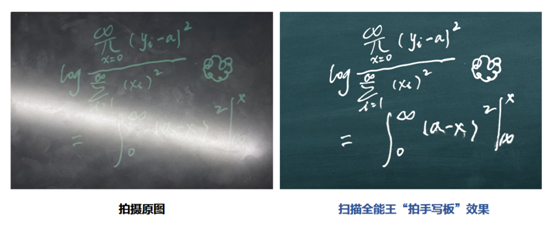 手機、相機產生的數字圖像里,反光是常見的干擾因素。比如,高校學生拍攝黑板上的知識點,卻發現畫面總是被幾道反光“切割”,導致有些知識點看不清,十分惱人。但是,“拍手寫板”中的“板報”模式,可以完整還原黑板上的粉筆書寫效果,美觀又清晰。
