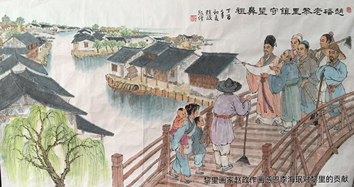 2017年,李海珉舉辦了一次中秋顯寶活動,黎里畫家趙政繪制了一幅《趙磻老黎里鎮守望鼻祖》,南宋初期的趙磻老黎里鎮奠基人,他對黎里當年的規劃建設起著重要的作用,被尊稱為“守望鼻祖”,畫家將這幅畫贈予李海珉,把他比作當代黎里的守望者。