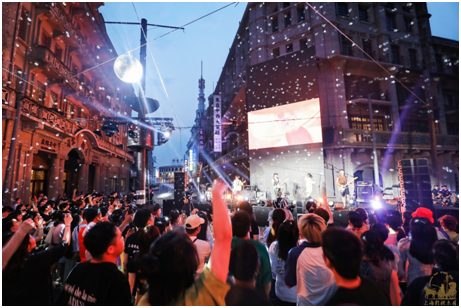 為響應發展“夜經濟”的號召,6月10日,上影集團旗下的上海影視樂園,利用自身特色,聯合藝術團隊,共同打造了首屆“夜上海!電影音樂節”,通過LED大屏、街區建筑投影以及現場音樂,將新媒體藝術與海派復古街景完美結合。