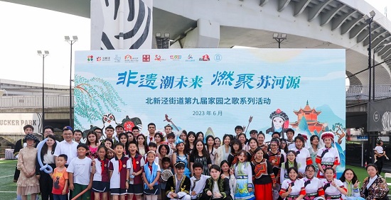 2023年文化和自然遺產日(6月10日),進一步提升實踐、文化育人質量,上海對外經貿大學會展與傳播學院、體育健康學院,走進長寧區北新涇街道,在蘇河源城市活力創享空間斑馬足球場開展“非遺潮未來燃聚蘇河源”第九屆家園之歌系列活動。