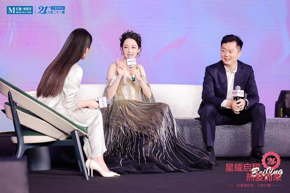 在現場互動時,迪麗熱巴肯定地表示,紅星美凱龍是一個專業、時尚、便捷、放心的家居商場。