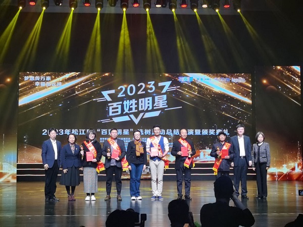 11月14日舉辦的“夢想傳萬家,幸福在云間”2023年上海市松江區“百姓明星”選樹活動總結展演暨頒獎典禮,有中山街道舞蹈隊(舞蹈)、方松新城藝術合唱團(合唱)和上海云間滬劇中心(民營劇團)獲“百姓明星”團隊獎,陶木南(演講)、孫濱(書法)、謝甫涓(美術)、方濱(手工藝)、黃申彝(攝影)獲“百姓明星”個人稱號。
