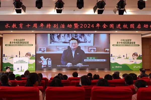 康師傅控股有限公司行政總裁陳應讓通過視頻帶來了他對康師傅水教育十周年的誠摯寄語,“我們欣喜地看到,越來越多的青少年開始關注水資源問題,積極參與到節水活動中來?!?/p>
