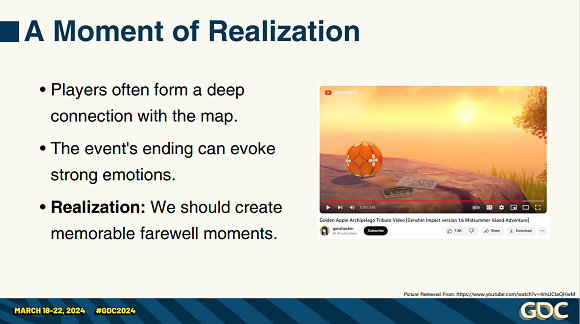 《原神》是一款注重運營及生命力的產品,想要傳達的是一種普世美好的價值觀。演講的最后李軼軒表示,“與玩家珍貴的記憶產生共鳴,看到玩家在社區中熱烈討論他們在探索限時地圖時發現的隱藏線索、享受拼湊完整故事的樂趣,這正是我們想要通過夏日限時活動地圖帶給玩家的意外驚喜?!?/p>