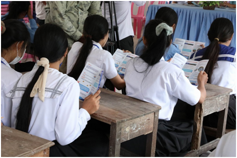 上海海洋大學留學生辦公室施佳懿老師詳細介紹上海海洋大學“水產養殖本科”國際學生招生政策及申請流程,并發放相關材料。上海海洋大學柬埔寨留學生賀子真分享了其在上海海洋大學的留學經歷及經驗,鼓勵柬埔寨中學生爭取到上海海洋大學的學習機會,為柬埔寨農業發展添磚加瓦。
