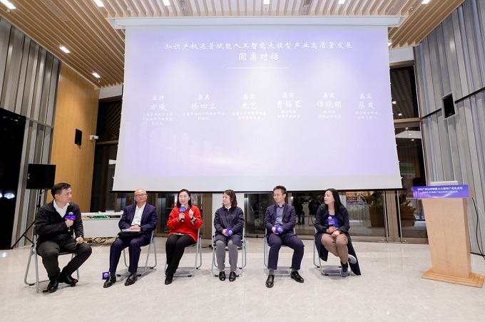 圓桌對話環節由上海應用技術大學中歐知識產權學院副院長方曦主持,上海市知識產權保護中心副主任徐四立、上海人工智能實驗室科研管理總監鹿藝、上海商湯智能科技有限公司知識產權經理曹梅蓉、上海米哈游網絡科技股份有限公司資深法務專家譚曉明、亞馬遜云科技城市初創生態和大企業融合創新負責人蔡爽,分別就“專利快速審查流程如何更好地滿足人工智能企業的創新需求”“如何平衡人工智能技術的創新發展和知識產權的保護”“AI大模型目前知識產權運營中面臨的挑戰和解決方法”“如何建立有效的知識產權管理體系來支持AI大模型產業化”“AI大模型知知識產權保護手段及難點”“大模型生成產物知識產權協同保護路徑”等議題進行了探討和交流,并分別作了發言。(主辦單位供圖)