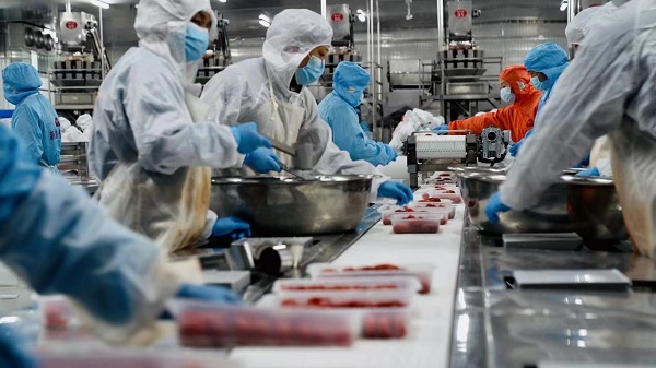 2023年4月,叮咚買菜和盱眙縣合作建設的龍蝦超級工廠正式投產,每天可以加工活蝦4萬斤,只需要24小時,從蝦田到消費者餐桌。目前,叮咚買菜盱眙超級工廠已打造成集小龍蝦培育、研發、加工為一體的預制菜供應鏈。