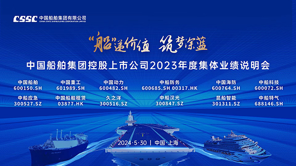 5月30日,中國船舶集團有限公司(以下簡稱“中國船舶集團”)在上海召開了“中國船舶集團控股上市公司2023年度集體業績說明會”。此次會議以“‘船’遞價值,筑夢深藍”為主題,全面展示了中國船舶集團及其控股上市公司,在過去一年的業績成果與未來的發展愿景?;顒油ㄟ^上海證券交易所上證路演中心、全景網等平臺進行了全程直播。
