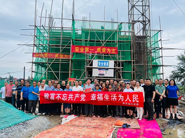 “七一”當日,黃家溪商會黨總支到孟奶奶家進行了走訪慰問,向她了解了近期的生活情況,并送上了慰問品,期間還對房屋建設情況跟進監督,確保孟奶奶全家住上“安心房”。5月6日,盛澤鎮黃家溪商會通過共富基金向該村村民孟愛珍捐贈了一棟房屋。按照工程計劃,孟愛珍一家的新房將于10月初完成建設并交房。如今,孟奶奶家的新房已初具雛形。