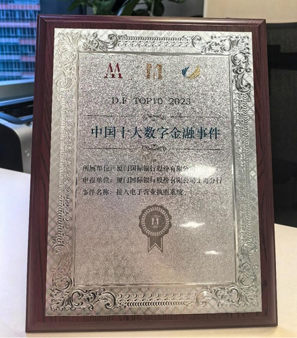 • 廈門國際銀行上海分行“接入電子營業執照”榮獲中國十大數字金融事件