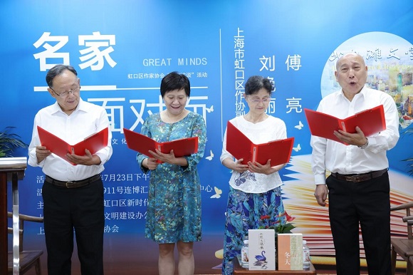 近日,上海市虹口區新時代文明實踐中心、上海市虹口區精神文明建設辦公室、上海市虹口區作家協會共同主辦的第二期“面對面·名家訪談”活動成功舉辦?;顒友埩撕缈趨^作家協會副主席劉艷麗、副主席傅亮兩位名家訪談;虹口區文聯副主席、虹口區作家協會常務副主席袁興金主持活動。