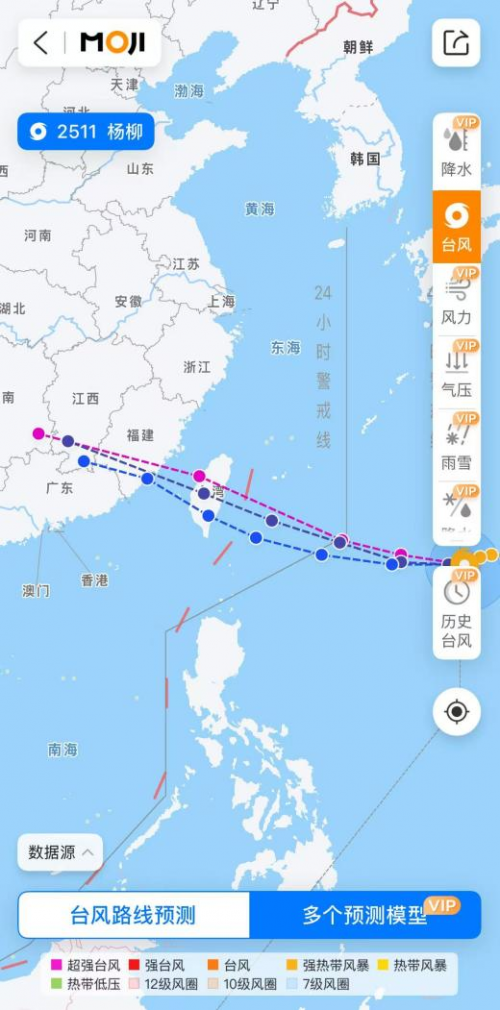“楊柳”的移動路徑受副高、冷空氣及臺風自身內力(如β效應)共同影響,存在較大變數:若副高持續強勢,臺風將沿其南緣西行登陸我國臺灣、閩粵;若副高南壓疊加冷空氣助推,登陸點可能在汕頭至廈門;若臺風強度增強至≥14級,科氏力導致的北偏效應或使路徑偏離原軌跡50~100公里。面對路徑預測的復雜性,墨跡天氣臺風預報依托數據融合與智能算法,整合多家權威機構模型數據,突破傳統局限,內設多個預測模型功能,為用戶提供更專業、可靠的路徑預報參考,為日常出行和臺風避險決策提供有效的指導和參考。